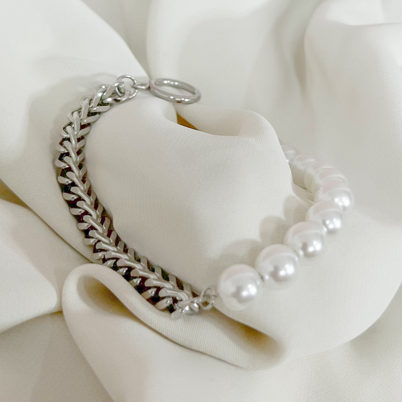 PULSERA CADENA PERLAS PLATEADO